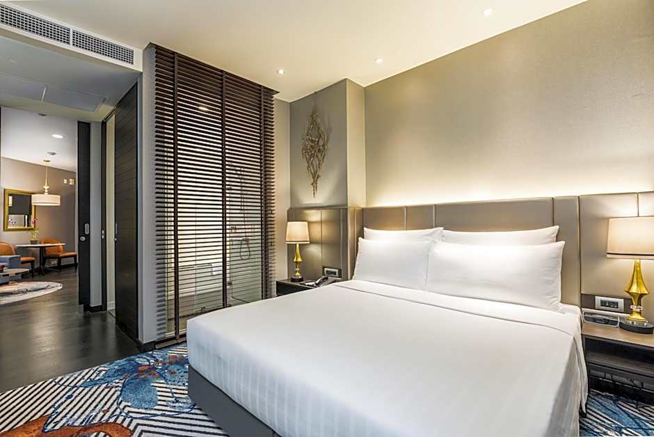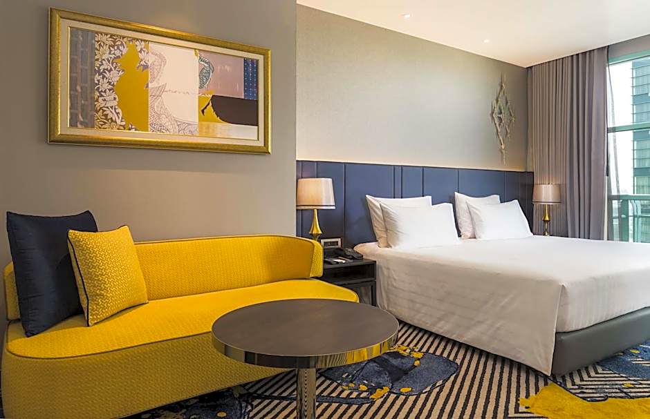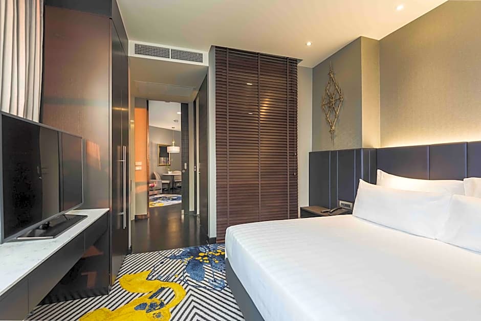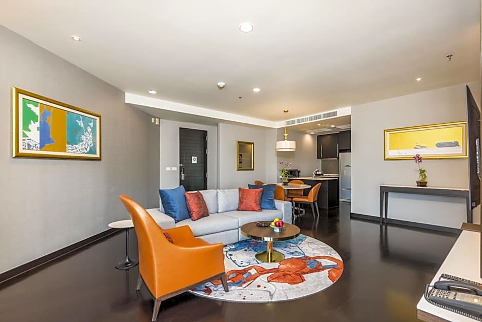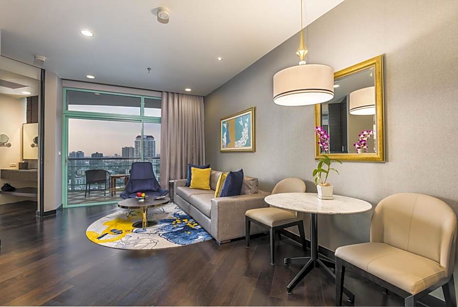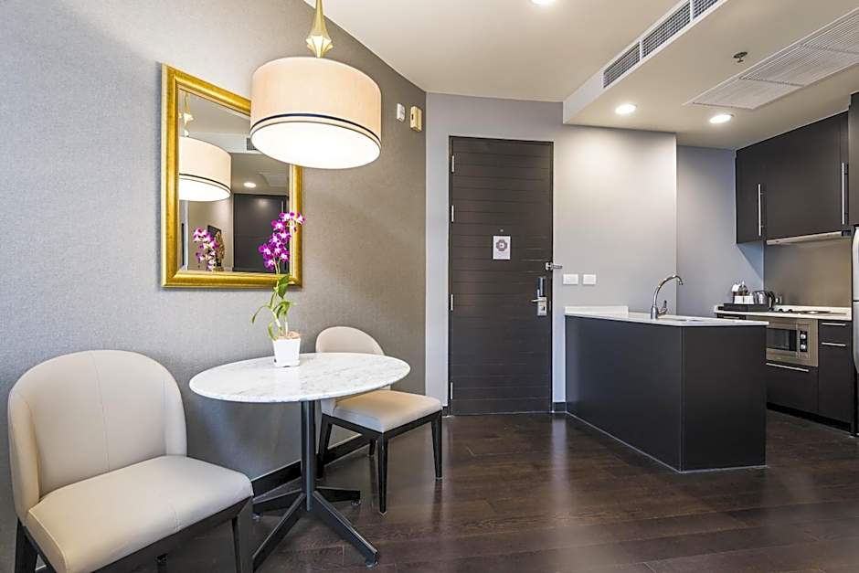 This spacious suite consists of a kitchen, a seating area, 1 separate bedroom and 1 bathroom with a walk-in shower and a bath. The fully equipped kitchen features a refrigerator, an oven, a microwave and an electric kettle. The air-conditioned suite provides a flat-screen TV with cable channels, soundproof walls, a mini-bar, executive lounge access as well as city views. The unit offers 1 bed.
